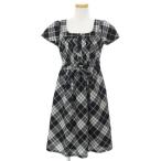 バーバリー ロンドン BURBERRY LONDON フレアワンピース シャツ ひざ丈 半袖 バンドカラー チェック柄 シルク混 36 黒 ブラック
