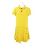バーバリーブルーレーベル ワンピース ミニ 半袖 ラウンドカラー マーメイドシルエット ハニカム生地 38 M 黄 マスタード /AH22