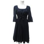 バーバリーブルーレーベル BURBERRY BLUE LABEL ワンピース フリル袖 ひざ丈 ウエストリボン 紺 ネイビー 38 約M IBO79