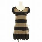 バーバリーブルーレーベル ニットワンピース ミニ 半袖 Vネック ボーダー柄 切替 フリル ロゴ 刺繍 ウール混 38 茶