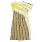 未使用 21AW BURBERRY バーバリー シルク アシンメトリー ノースリーブ ワンピース ドレス ハーフ UK10 イエロー ブラウン レディース 古着 中古