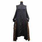 【中古】未使用品 21aw バーバリー ロンドン BURBERRY LONDON by RiccardoTisci ユニオンフラッグ グラフィック ワンピース ドレス アシンメトリー ギャザー リカルド・ティッシ リカルド期 38 黒 ブラック レディース ▽7 【ベクトル 古着】 241209
