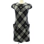 バーバリー BURBERRY チェック柄 ノースリーブ ワンピース ひざ丈 ワンピース スカート 毛 絹 ブラウン レディース 中古
