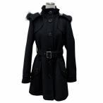極美品★BURBERRY BLUE LABEL バーバリーブルーレーベル アンゴラ混 ラクーンファー・フード付 裏地チェック柄 コート 黒 40 正規品