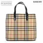 新品同様 バーバリー BURBERRY ノバチェック トート バッグ PVC レザー ベージュ ブラック シルバー 金具 Tote Bag 90317173