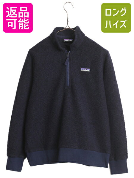 US企画 19年製 パタゴニア ウーリエステル フリース ジャケット レディース M 古着 Patagonia アウトドア ハーフジップ ジャンパー ウール| 中古 日本未発売 フリースジャケット プルオーバー ブルゾン ボア パイル ウール混 ワンポイント ハイネック ロゴ刺繍 ネイビー 紺