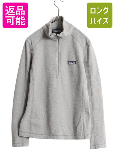 19年製 パタゴニア マイクロD ハーフジップ フリース プルオーバー レディース XS 古着 Patagonia ロンT 長袖 Tシャツ ハイネック 薄手 灰| 中古 アウトドア フリースTシャツ カットソー 長袖Tシャツ ロングTシャツ ジップネック ミドルレイヤー インナー ロゴ刺繍 グレー