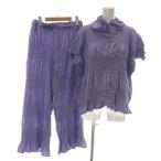 me ISSEY MIYAKE SHRINK STRIPE TOP PANTS セットアップ 上下 シャツ ブラウス 半袖 プリーツパンツ イージー シャーリング F 紫