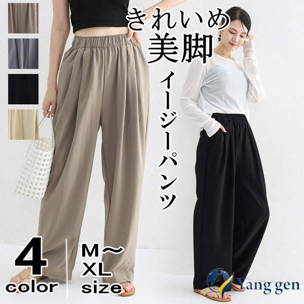 クーポンで8%OFF!ワイドパンツ レディース イージーパンツ テーパードパンツ シワ加工 接触冷感 さらさら エアパンツ 長ズボン ロングパンツ 無地 カジュアル ウエストゴム ひんやり 涼しい 薄手 UVカット ガウチョパンツ 無地 体型カバー 疲れない(アパレル)