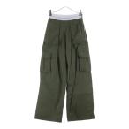 80/-綾タイプライター近江晒 ギャザーウエスワイドカーゴパンツ