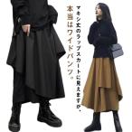 バギーパンツ ワイドパンツ キュロット アシンメトリー パンツ キュロットスカート 重ね着風 9分丈 ラップ風 レディース 春 秋 おしゃれ ユニーク