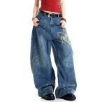 ジーンズ デニム デニムパンツ Loveハート刺繍カーブワイドデニムパンツ レディース