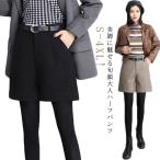 ハーフパンツ ショートパンツ レディース パンツ フェイクウール ウールタッチ 五分丈 キュロットパンツ ゆったり 無地 ワイドパンツ ショーパン 半
