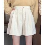 パンツ コーデュロイ プリーツ ハイウエスト ショート パンツ レディース