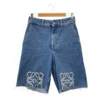 LOEWE / ロエベ アナグラム ロゴレザーパッチ カットオフ デニム ワイド ショートパンツ