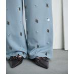 スウェットパンツ ジャージ ビジューデザインスウェットイージーパンツ レディース