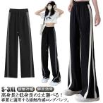 スウェットパンツ レディース ワイドパンツ ジョガーパンツ サイドライン 薄手 夏 部屋着 スポーツ 運動 ゆったり ウエストゴム ボトムス