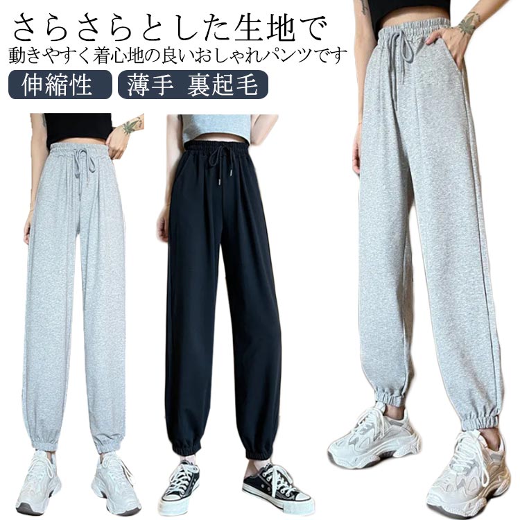 スウェット パンツ レディース ジョガーパンツ ロングパンツ 冬 春秋 ボトムス スエット 太め ヒップホップ 伸縮性 ストレッチ ゆったり ルームウェア 部屋着 おしゃれ カジュアル ストリート 無地 リラックス ウエストゴム 裾 薄手 裏起毛 スポーツ ダンス 送料無料