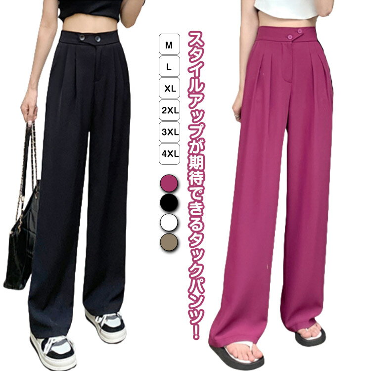 タックパンツ レディース スラックス タック ワイドパンツ ハイウエスト ワイド ストレート ゆったり 長ズボン 無地 シンプル きれいめ カジュアル 体型カバー オフィスカジュアル 仕事 ビジネス 通勤 春 秋 冬 送料無料