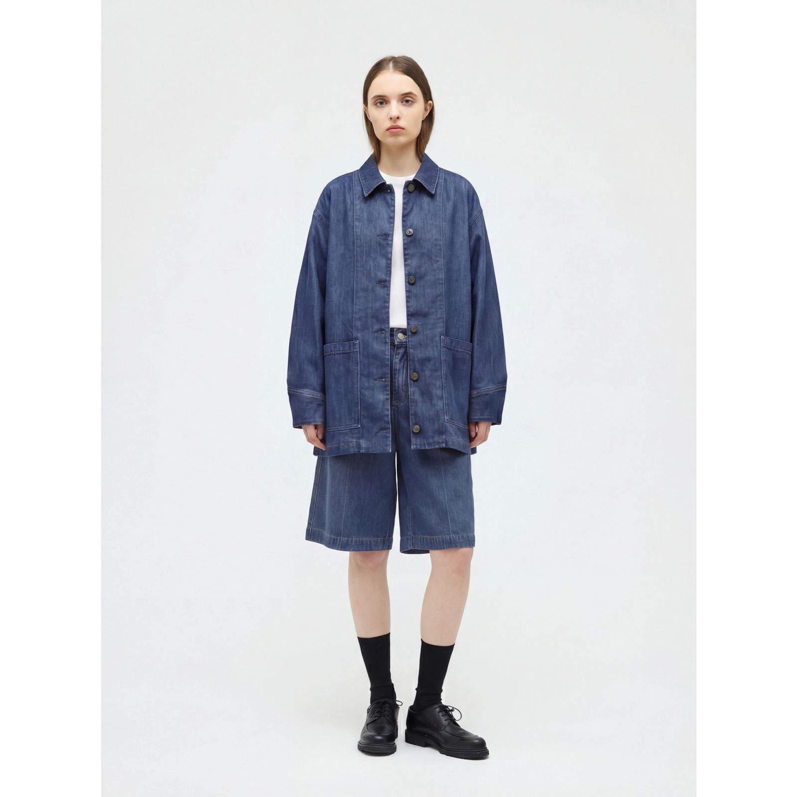 mizuiro ind(ミズイロインド)/デニムハーフパンツ(BLEACH)