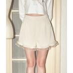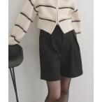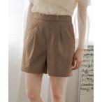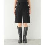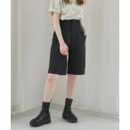 \10%OFFクーポン/「だぼっときれいに」ハーフパンツ レディース きれいめ ボトムス ひざ上 タック フロント Aライン フレア ゆったり 無地 ツイル生地 ハイウエスト ボタン ファスナー ポケット バックウエストゴム ベルトループ ポケット 薄手 黒 白 春 夏 秋