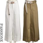 パシオーネ バギー ワイド パンツ レディース ベルト付き ホワイト 白 ベージュ 40代 50代