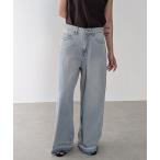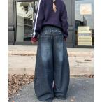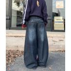 ジーンズ デニム デニムパンツ ワイドバギーデニムパンツ 裾ダメージ加工 オーバーダイ レディース