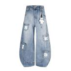 ジーンズ デニム デニムパンツ マスコットチャーム付き ペイントデザイン バギーデニムパンツ レディース