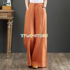 4色有り ワイドパンツ レディース バギーパンツ カジュアル ウエスト紐 リラックス ナチュラル 楽ちん S-3XL