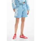 デシグアル Desigual 刺繍入りデニムバミューダパンツ (ブルー)
