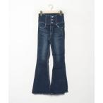 ジーンズ デニム デニムパンツ 「UNE ORIGINAL」ダブルボタンホワイトフリルハイウエストロングデニムブーツカット レディース
