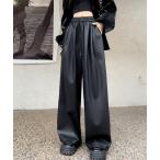パンツ フェイクレザーワイドパンツ レディース