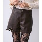 パンツ フェイクレザーストラップショートパンツ レディース