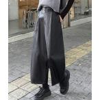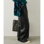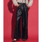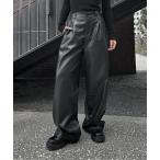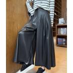 パンツ レザー風ワイドパンツ ボリュームデザイン レディース