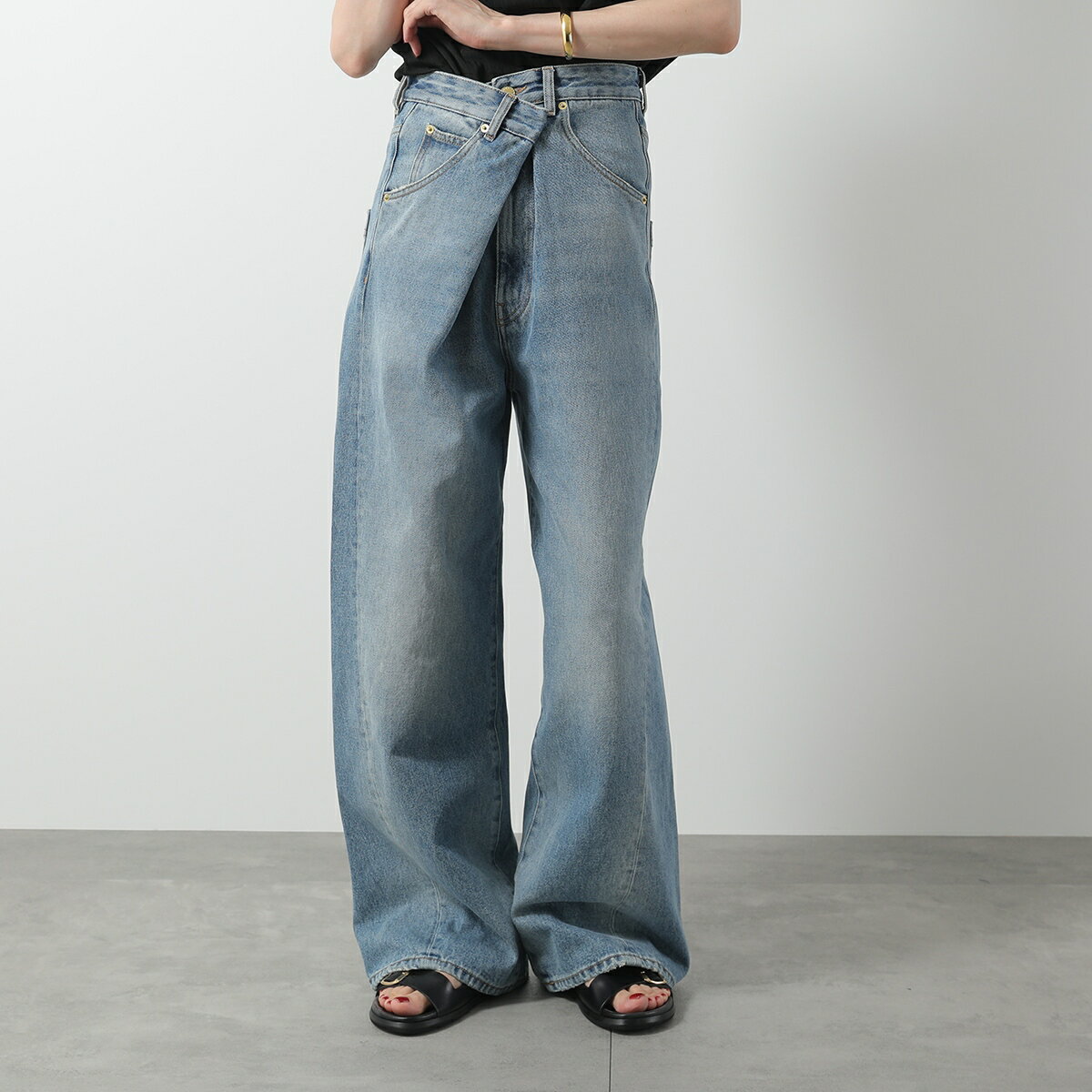 極美品◇LOEWE ロエベ S2292112IB フィッシャーマン ストーンウォッシュド ボタンフライ レザーロゴパッチ付 デニムパンツ 青 34 正規品