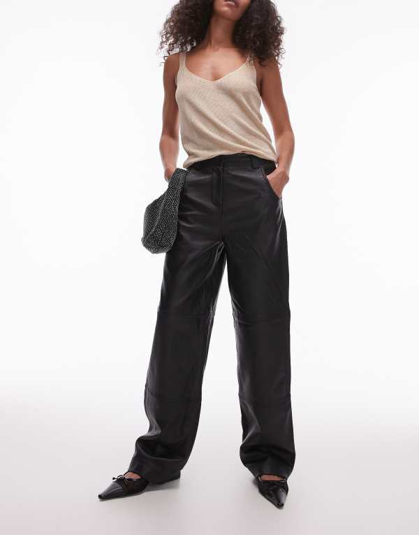 トップショップ レディース ボトムス カジュアルパンツ ストレート パンツ レザー Topshop Premium real leather basic straight leg pants black ブラック