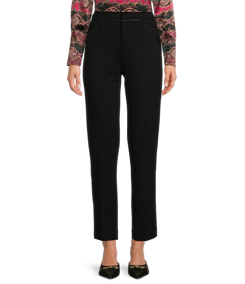 タイラーボウ レディース ボトムス カジュアルパンツ アンクル レザー フェイクレザー tyler boe Maddie Ponte Mid Rise Faux Leather Piping Ankle Length Pant Black ブラック