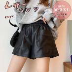 レザーパンツ ショートパンツ レディース パンツ PU革 紐 ハイウエスト ウエストゴム カジュアル 着痩せ 美脚 オシャレ 秋冬