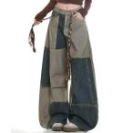 ジーンズ デニム デニムパンツ 「26春夏新作」パッチワークデニム /編み込みベルト付きワイドパンツ レディース