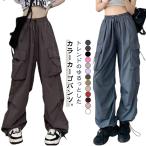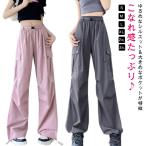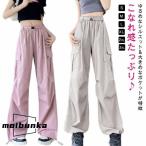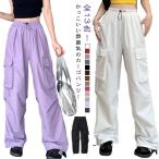 カーゴパンツ レディース パラシュートパンツ ワイドパンツ ワークパンツ ダンス衣装 ヒップホップ 無地 体型カバー ロング丈