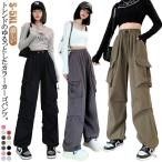 無地 ワイドパンツ ワークパンツ カラーパンツ おしゃれ ダンスパンツ ウエストゴム カーゴパンツ ロングパンツ ゆったり ゆったり 春夏 カーゴパン