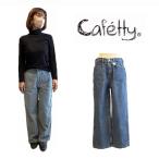 Cafetty カフェッティ ワークワイド デニムパンツ ジーンズ 綿100% ヴィンテージライク ストーンウォッシュ加工 ワイドストレート カジュアル (39-cf0607)