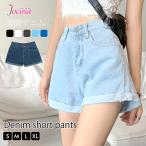送料無料 パンツ レディース デニム ショートパン デニムショートパンツ ハイウエスト デニムパンツ 短パン 裾ロールアップ 美脚 きれいめ ゆったり ワイドパンツ お洒落 カジュアル ボトムス シンプル 夏物 夏新作