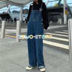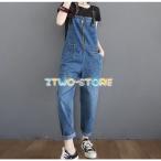 レディース オーバーオール デニム サロペット ジャンプスーツ つなぎ ワイドパンツ ストレート ポケット付 カジュアル ラフ ゆったり ルーズ 大きいサイズ 体型
