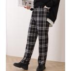 パンツ チェック柄裏ボアワイドイージーパンツ レディース