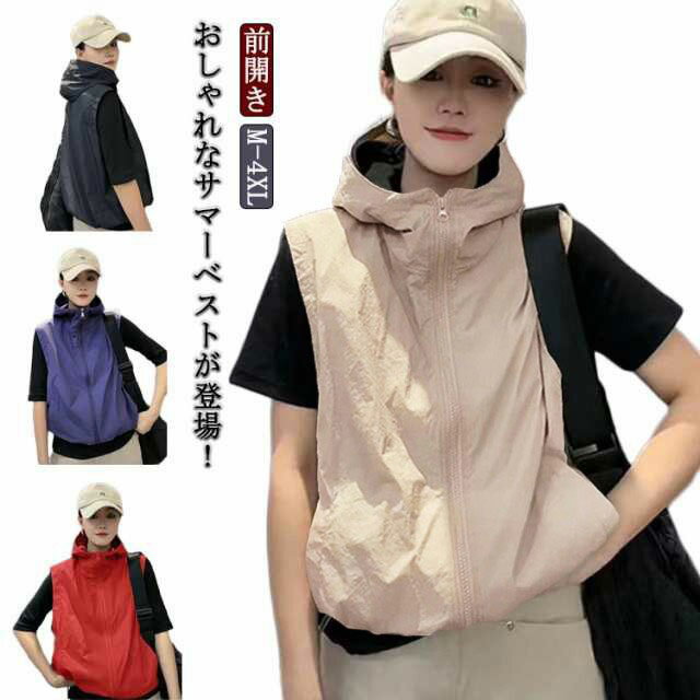 シンプル 春 半袖 涼しい アウター 大きいサイズ 送料無料 パープル 半袖パーカー 春夏 ベスト ゆったり フード付き 春夏 ジップアップ レディース 切り替え 無地 きれいめ カジュアル 前開き レディース トップス