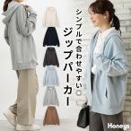トップス パーカー スウェット 長袖 ジップパーカー ジップアップパーカー フリーサイズ 綿 無地 羽織り レディース Honeys ハニーズ こだわり綿ジップパーカー