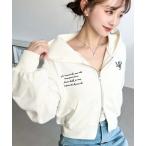 パーカー 裏毛ショート丈ロゴ刺繍ジップアップパーカー レディース