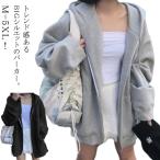 パーカー レディース ジップアップパーカー 春 秋 薄手 フード付き アウター ジップアップ パーカー スウェット 長袖 ライトアウター 春秋 ゆったり 大きいサイズ 韓国ファッション おしゃれ 可愛い きれいめ 無地 送料無料 グレー ブラック M-5XL