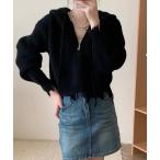 パーカー ニットパーカー ジップアップ ショート丈 Y2K パーカー フード ジップアップパーカー韓国 クロップド丈 ニットフーディ レディース